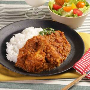 3の玉ねぎ、4の鶏肉(ボウルに残っているヨーグルト)を入れ、カットトマト缶を加 え水を入れ、約30~40分煮込む。