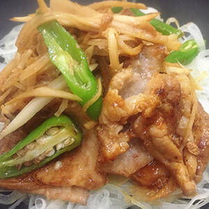 新生姜は皮を剥き、マッチ棒程度の太さの千切りにする。ししとうはヘタをとり、半分に切る。