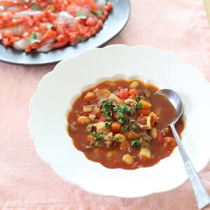 塩少々を振り、レモン果汁をかける。トマトのドレッシングをかけて、仕上げにイタリアンパセりをふる。