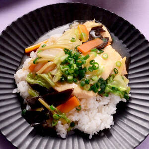 白菜の葉を入れてしんなりするまで煮る。とろみが弱ければ、よく混ぜた水溶き片栗粉を加えてとろみをつける。