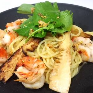海老と筍のアーリオオーリオペペロンチーノ