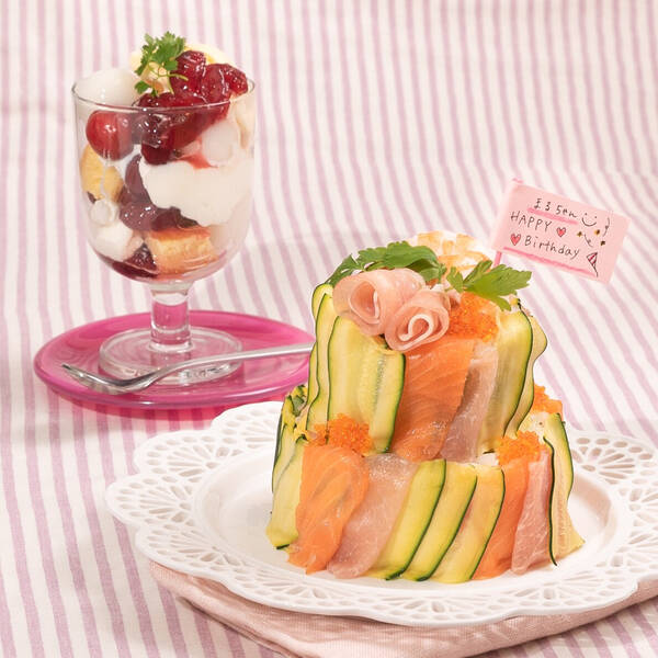 #1 ちらし寿司ケーキ&アメリカンチェリーと白玉のパフェ