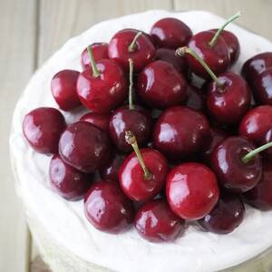 13のホイップクリームをのせて平らにならし、アメリカンチェリーを飾る。