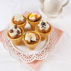 アイスクリームコーンに<2>を8分目まで入れ、アルミホイルで倒れないように側面を包む。