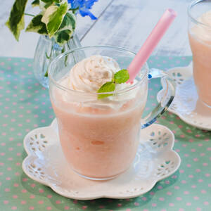 フラッペ状になったらグラスに移し、お好みでホイップクリームやミントを飾って出来上がり。