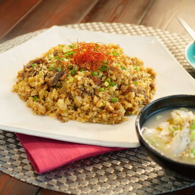 フライパンに<3>を加えて、パラパラになるように炒める。