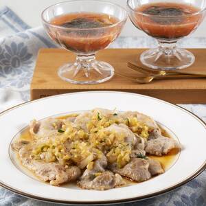 豚肉に塩コショウをし、オリーブオイルを温めたフライパンで焼く。