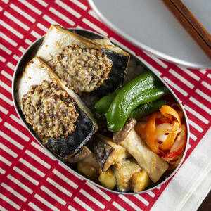 さばの皮目を上にして、【A】をサバに塗り、焼き目がつくまで焼く。