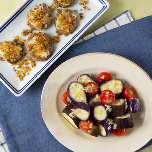 なすが少し冷めたら、1cm厚の輪切りにして、<2>のマリネ液と合わせる。冷蔵庫で冷やして、冷たくなったら、できあがり。