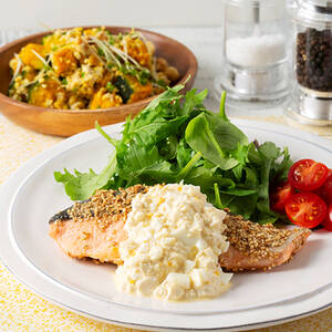 秋鮭のセサミムニエル豆腐のタルタルソース