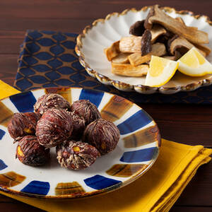水けをきり、栗をおしり(ツヤのない部分)を切り、そこから包丁を入れてむいていく。