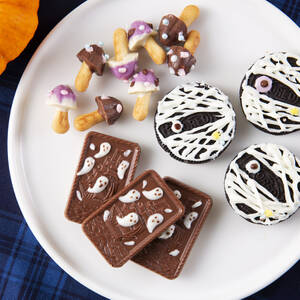 ※チョコが飛んだように見えるホワイトチョコは遠くで浮遊するオバケをイメージしています。