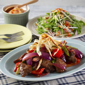 皿に<8>を盛り、<7>のドレッシングを添える。ドレッシングをかけよく混ぜ召し上がる。