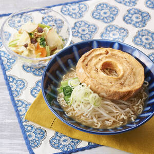 <3>の余分な水を捨て、塩味が強いようなら、ザルにあげてさっと水をかける。クルミとりんごを混ぜて出来上がり。