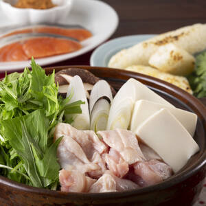 【石狩鍋】きりたんぽ鍋を味わったら味噌を溶かし入れ、鮭、白菜、春菊を入れる。約3〜5分加熱し、鮭にしっかりと火を通す。