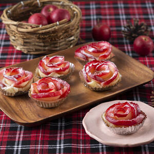上半分にりんごのスライスを7~8枚並べる。(両端は1cmあけておく)