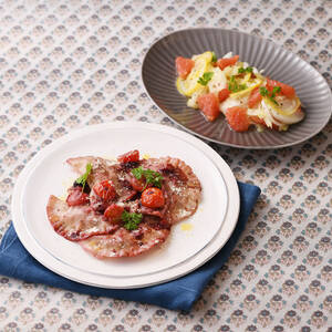 グレープフルーツは小房にむき、斜め切りに切っておく。
