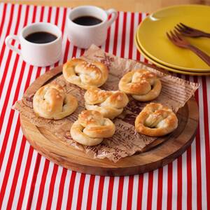 沸騰したお湯に砂糖をとかし、火を弱めて、生地を入れ、片面1分ずつゆで、天板に並べて岩塩をふり、焼く。