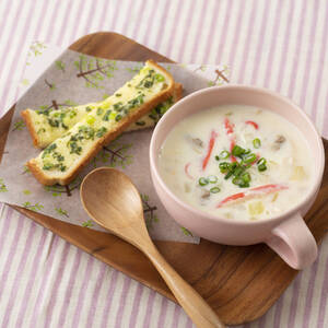 食パンに<3>をぬり、オーブントースターで約200〜250℃で3〜5分加熱する。