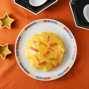 空いたフライパンに【C】を入れて煮立て、混ぜた【D】を加えてとろみが付くまで煮て、卵にかける。