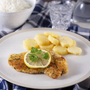 ジャガイモに竹串が通る程度まで、弱火で煮込み、器に盛りつける。