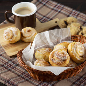 バターと粉糖・シナモンパウダーを合わせたものを塗り、くるくると巻き込む。