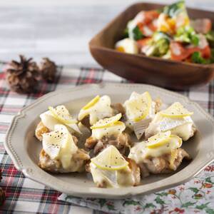 カマンベールチーズをのせて蓋をし、チーズが柔らかくなるまで30秒ほど蒸し焼きにする。