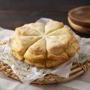状態が変わらなくなるまでおよそ1分程度混ぜたら、2分程度こね、フライドオニオンを入れて均一にする。