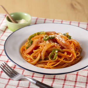 フライパンにサラダ油をいれて火にかけ、玉ねぎとソーセージを加えて炒める。