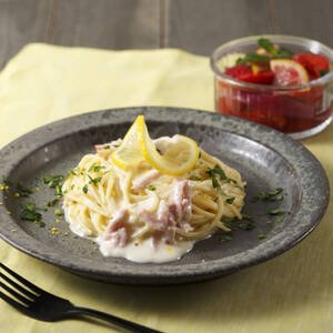 【A】を鍋に入れ、沸騰したら<2>を加えさっと湯がき、ザルにあけ、ボウルに入れる。