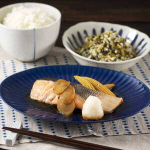 煮汁が1/4ほどに成るまで煮詰め、器に盛りつけ、大根おろしを添える。