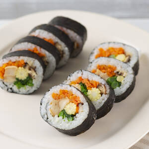 海苔を縦長に置き、上部2cm空けて酢飯を敷き、お好きな具材を真ん中より少し上に置いて巻いて頂きます。