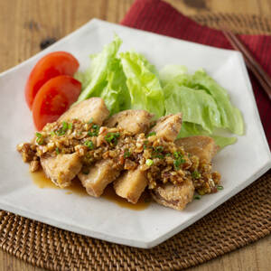 【A】を全て耐熱ボウルに入れ混ぜ合わせ、ふんわりとラップをして600wの電子レンジで1分加熱し、味をなじませる。