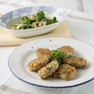 #48 ひよこ豆の鶏つくねと胡麻和え