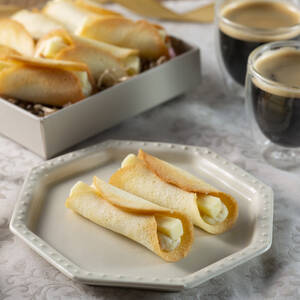 取り出したら急いで軍手などをし、筒状に丸めて冷ます。(箸などに巻きつけると簡単にかたちを作りやすいです。)