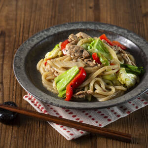 たっぷり春キャベツ!回鍋肉焼きうどん
