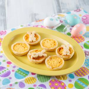 仕上げに粉糖をふり、うさぎのクッキーを飾る。