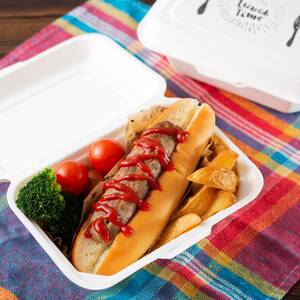 焼きあがったものが冷めたら、切り込みにからしバターを塗ったバンズにホットドッグをはさむ。