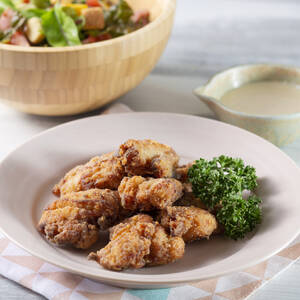鶏もも肉を小さめの一口大に切り、【A】を一緒にジップ付き袋にいれてよく揉み5分ほど漬ける。