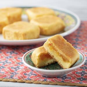 クッキー生地を7等分し、ラップに挟んで10cmの円形に伸ばし、ジャムを包み、四角く形を整え、アルミカップに入れる。