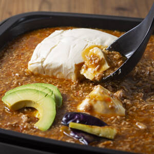 全体をよく混ぜ合わせたら再度加熱し、ひと煮立ちさせたら完成。トッピングとお好みでラー油、山椒と一緒に頂きます。