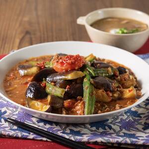 トマトとオクラの麻婆なす
