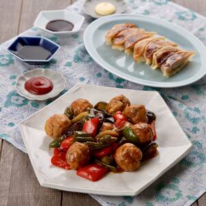 豚肉は広げて塩(少々)、こしょう(少々)し、丸める。8個作り、全体に片栗粉(適量・分量外)をふる。