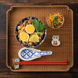 炊き上がったごはんの上に<5>の具をかけ、<6>とたくあん、フライドオニオン、三つ葉を盛り付けてできあがり。
