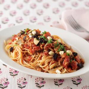 鰯とレーズンのトマトソースパスタ