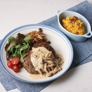 お好みでシナモンパウダー(少々)、塩(少々)、粗びき黒こしょう(少々)で味をととのえ、器に盛りつける。
