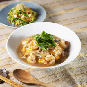 <3>の海老を加えサッと炒めたら、<5>のあんかけを流し込み、ひと煮立ちさせる。沸騰したら弱火にして数分間煮る。