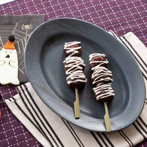 溶かしたホワイトチョコペンをランダムにかけ、赤いチョコレートペンなどで目を書いたら完成。