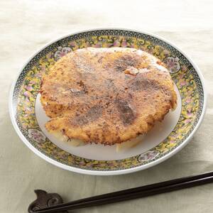 3分経ったら蓋を外し、水分を飛ばす。チーズが焼けてきたらフライ返しで周りから剥がし、器に盛り付けて完成。