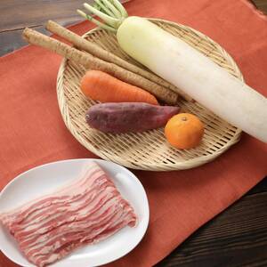 フライパン油をひき、豚肉を炒める。軽く火が通ったらいちょう切りにいしたにんじんを入れる。